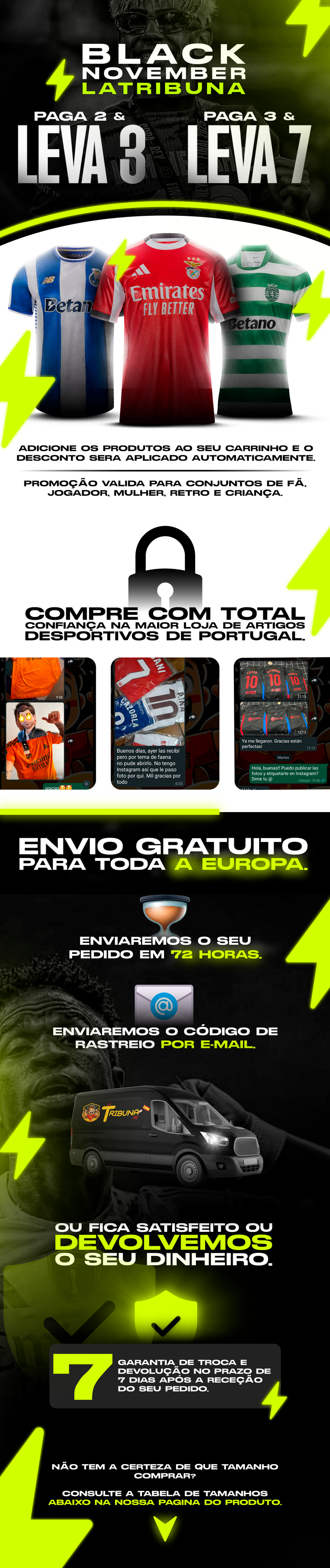 Queremos que aproveite a sua camisola como um verdadeiro fã. Por isso, trabalhamos com os melhores fornecedores, oferecemos personalização gratuita e enviamos em segurança para toda a Europa. Se tiver alguma dúvida, a nossa equipa de suporte está disponível 24 horas por dia, 7 dias por semana.